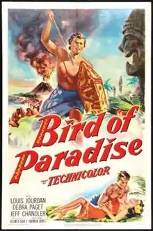Bird of Paradise is a 1951 American adventure drama and romance film in Technicolor, produced and directed by Delmer Daves, and starring Debra Paget, Louis Jourdan, and Jeff Chandler.[3] The screenplay was also written by Daves based on the 1912 play by Richard Walton Tully. The film was distributed by 20th Century-Fox.