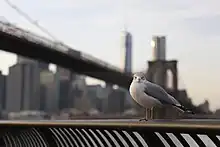 Ludlow Griscom's 1923 handbook, Birds of the New York City Region, counts 377 species and subspecies divided into categories of "residents" (37 year-round and 89 in the summer), "visitants" (6 in the summer, 30 in the winter, 20 irregularly in the winter, 18 "casual", and 66 "accidental"), "transients" (78 regular and 21 irregular), and 12 "extinct or extirpated species".[9] The New York City Audubon Society reports more than 400 documented species in the city, with between 200-300 on any given year.[1][7] The quantity of pigeons, rats, and mallards attract raptors like hawks and a smaller number of owls. Between 1998-2002, a Parks Department initiative reintroduced eastern screech owls to Central Park after none had been seen since 1955.[10][11]