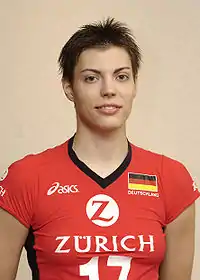 She made her debut for the German Women's National Team in 1999. She played at the 2002 FIVB Volleyball Women's World Championship in Germany;[1] she represented her native country at the 2004 Summer Olympics in Athens, Greece.