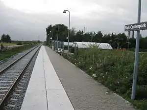Birk Centerpark railway halt is a railway halt serving the district of Birk in the eastern part of the city of Herning in Jutland, Denmark.[1][2] The halt serves several businesses, educational institutions and a residential area for students in the eastern part of Herning.