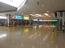 All check in desks and arrivals are on the ground floor. The central security area, along with airside shops and restaurants are located on the first floor.