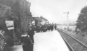 The station opened on 1 May 1862 by the North Eastern Railway.[3] One of the two important intermediate stations on the Nidd Valley Branch, (the other being Dacre), it had a three-storey station building with the platform at first floor level, with access by steps from the yard. This was a stone building to the designs of NER Architect Thomas Prosser, and with its stepped gables it resembled those at Ripley, Dacre and Pateley Bridge. There was a large goods yard with 6 coal cells, a warehouse, a hand crane, a weigh office and five cottages for railway staff on the northern boundary. The signal and point levers were originally located on the platform but in April 1910 a new signal cabin was put into use at the Ripley end of the platform. Although there was a loop off the single line at Birstwith (and at Dacre), this could only be used by freight trains - in fact the timetable did not require passenger trains to cross at intermediate stations.
