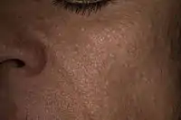 | The characteristic fibrofolliculomas of Birt–Hogg–Dubé syndrome seen on a person's face. | |