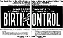 Birth Control (also known as The New World) is a lost[1] 1917 American documentary film produced by and starring Margaret Sanger and describing her family planning work. It was the first film banned under the 1915 ruling of the United States Supreme Court in Mutual Film Corporation v. Industrial Commission of Ohio,[2] which held that the exhibition of films did not constitute free speech.