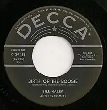 "Birth of the Boogie" is a 1955 song composed by Bill Haley with Billy Williamson and Johnny Grande. The song was released as a Decca single by Bill Haley and His Comets.