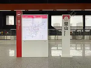 Bishan is a station on Line 1 of Chongqing Rail Transit in Shuanglong Avenue, Bicheng Subdistrict, Bishan District, Chongqing Municipality, China. The station opened on December 30, 2019.[1][2] It is CRT's first station to be built outside of the Metropolitan Area of Chongqing.[3]