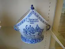 A bishop-bowl (Danish: Bispebolle) is a punch bowl made of faience and shaped in the form of a mitre (a bishop's hat) that was popular in Denmark and Schleswig-Holstein in the eighteenth end nineteenth centuries. The alcoholic drink served from the bowl was known as "bishop".[1]