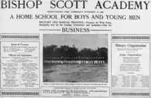 Subsequently, several unsuccessful attempts were made to revive the Academy in Yamhill County, Oregon.[6] For example, in June 1913 The Ontario Argus announced that "the Bishop Scott Grammar School for Boys" would reopen in September, north of Yamhill.[25]