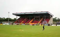 The stadium underwent a huge redevelopment at the end of 2000–01 season. Previous to this, while containing a good pitch and floodlights, the ground had poor facilities along with two terraced (one uncovered) stands and a single-seater stand. The club's promotion to the Premier Division in 2000 was seen as a catalyst in the redevelopment of the ground to its present-day form. Through the receipt of government and FAI grant aid, it was fully redeveloped into an all-seater stadium by July 2001. The ground's capacity is 5,097.