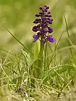 Many calcareous species such as cowslip, quaking grass and dwarf thistle thrive in the reserve's old quarry and spoil heaps. The early purple orchid is also common in some areas.