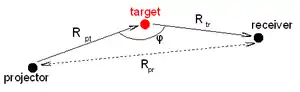 This is the sonar with a small bistatic angle. In other words, both the range from projector to target Rpt and from target to receiver Rtr is much greater than the distance from projector to receiver Rpr.