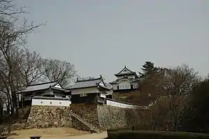 In the Meiji period, the castle was partly destroyed, but the rest of it was abandoned and slowly fell into disrepair. In 1929, a citizens' group was established and restoration work was begun on the castle. Three parts were saved and still stand today: a short section of wall, the Nijū yagura, and the tenshu.[4]
