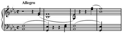 The following passage, taken from Beethoven's Piano Sonata in E, Op. 81a (Les Adieux), suggests clashes between tonic and dominant harmonies in the same key.[18]