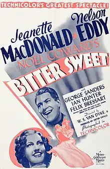 Bitter Sweet is a 1940 American Technicolor musical film directed by W. S. Van Dyke, based on the operetta Bitter Sweet by Noël Coward. It was nominated for two Academy Awards, one for Best Cinematography and the other for Best Art Direction by Cedric Gibbons and John S. Detlie.[2]