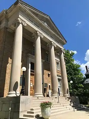 The cornerstone for the Bixby was laid in September 1911.[1] On August 1, 1912, the 3,530 volumes plus public documents, government reports and unbound magazines of the City Library were transferred to the newly opened Bixby Library and dedication ceremonies were held on October 1, 1912. At the dedication, President John M. Thomas of Middlebury College said: