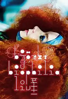 Biophilia Live is a 2014 British concert film by Björk, directed and edited by Peter Strickland and Nick Fenton. The film features Björk performing tracks from her Biophilia Tour, which started in June 2011 and ended in September 2013. It was filmed at Alexandra Palace in London on 3 September 2013, and had a theatrical premiere at the Tribeca Film Festival on 26 April 2014[3][4] with screenings across the world throughout the same year.