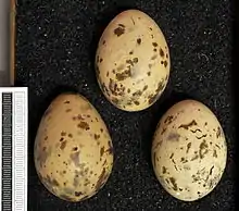 Conspecific brood parasitism is a behaviour that occurs when females lay their eggs in another female's nest, of the same species.[16] It can reduce the cost of incubation and nestling young by passing it on to another bird. Black-headed gulls usually lay three egg clutches, and the first two are normally larger than the third.[16] The third egg normally has the lowest survival rate, while the first or second are usually the parasitic eggs.[16]