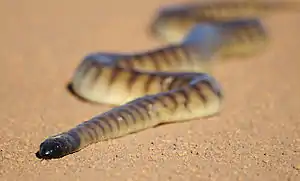 The black-headed python (Aspidites melanocephalus)[3] is a species of snake in the Pythonidae (the python family). The species is endemic to Australia. No subspecies are currently recognized.