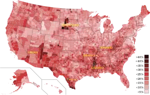 In 1936, sociologist Arthur Raper described the Black Belt as some 200 plantation counties where blacks represented more than 50% of the population, lying "in a crescent from Virginia to Texas".[5] Black population decreased in some areas after the Second Great Migration, when 4.5 million rural blacks left the region from 1940 to 1970. But the University of Alabama in 2007 classifies "roughly 200 counties" as comprising the Black Belt, with significant black populations.[6] The Mississippi Encyclopedia adds to this definition a long history of cotton production.[1]