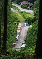 Apart from the Hirsau Tunnel, the planners considered it necessary to create two more tunnels in this last phase of construction due to the topographical conditions, but only one was built, the 696-metre-long Forst Tunnel. The other, which was originally to be built between Althengstett and Calw, could not be built because of geological problems. Instead, the Feldhütte cutting, which was 1,150 metres long and up to 38 metres deep was built.[3][4]