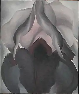 Black Iris, sometimes called Black Iris III,[1] is a 1926 oil painting by Georgia O'Keeffe.[2] Art historian Linda Nochlin interpreted Black Iris as a morphological metaphor for female genitalia.[3][4] O'Keeffe rejected such interpretations in a 1939 text accompanying an exhibition of her work by writing: "Well—I made you take time to look at what I saw and when you took time to really notice my flower you hung all your own associations with flowers on my flower and you write about my flower as if I think and see what you think and see of the flower—and I don't."[5] She attempted to do away with sexualized readings of her work by adding a lot of detail.[6]