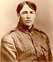 While the raid was taking place, Major Bassett, commander of the militia, slipped out a rear window in his house and raised a posse of eleven men to pursue the Night Riders as they left town.[8] Because the Night Riders failed to post a rear guard, members of the posse were able to mingle with them. Several miles outside of town the Night Riders split up, with most riding off in a different direction. The posse stayed with the smaller group and opened fire, killing one man and injuring another.