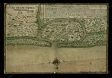 The Mosquito Coast extended from the Aguan River down to the San Juan River. The area was first explored by Christopher Columbus in 1502.[1] The area where this settlement was established is a lagoon near the mouth of what was then called the Black River, Río Negro, or Río Tinto, but is now known as the Sico River (or Río Sico). The lagoon is in the northwestern corner of the Honduran department of Gracias a Dios, between the Caratasca Lagoon and the present-day port city of Trujillo, which was then the site of a small Spanish settlement.