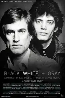 Black White + Gray: A Portrait of Sam Wagstaff and Robert Mapplethorpe is a 2007 American documentary film directed by James Crump.[1] The film chronicles the symbiotic relationship between Sam Wagstaff, an American museum curator and collector of fine art, and Robert Mapplethorpe, the American fine art photographer whose controversial images were at the center of debate about public funding for the arts and the culture wars of the late 1980s.[2][3] The film also explores the relationship both men shared with poet/musician Patti Smith in the New York art world of the 1970s.[4]