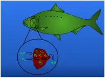Black gill disease, also known as black spot disease or black death, is a bacterial disease affecting various species of fish, including shellfish and crustaceans, across the Atlantic and Pacific oceans. The disease is characterized by the visibly noticeable black melanated gills, speculated to be caused by a fungus bacterium called Fusarium solani or a similarly shaped ciliate. Human consumption of fish affected by black gill disease is harmless.[1]