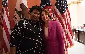 One critical factor of the 2020 United States presidential election win was the efforts of Black women and other people of color who helped to energize and register voters across the United States. Stacey Abrams, former Representative of Georgia (2007 to 2017) and minority leader (2011 to 2017), founded both Fair Fight Action and New Georgia Project, organizations focused on addressing voter suppression and voter registration, and is often considered to be one of the key people to encourage voter outreach programs that affected the 2020 election in Georgia.[29] Abrams and other prominent women of color worked for several years registering voters and continued to register more than 800,000 new voters in the time leading up to the 2020 election.[30] While Georgia went to Donald Trump during the 2016 election, fueled by a mostly white, Republican electorate, Abrams and her cohorts chose to focus on persuading apathetic voters of color that their votes did matter rather than focusing on undecided white voters.[31] As a result of these efforts as well as changing ideology in white voters, Georgia went to Democrats during the 2020 election, the first time the state went blue since 1992.[32][33] Abrams was also the first Black woman to deliver a response to the State of the Union address. In 2020, more than two-thirds of black women had "turned out to vote in the 2020 presidential election." This was in fact the, "the third highest rate of any race-gender group."[34] However, this increase in voting did see a decrease in the percentage of black women who voted Democrat, with a 4% decrease of the number of black women voting for the democratic presidential candidate from 2016. Despite this, the democratic candidate, Joe Biden, still won the election.