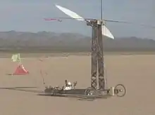Blackbird is an experimental wind-powered vehicle, built in 2010 to demonstrate that it is possible for such a vehicle to go directly downwind faster than the wind. Blackbird employs a rotor connected to the wheels and does not have a motor, battery or flywheel.[1] It was constructed by Rick Cavallaro and John Borton of Sportvision, sponsored by Google and Joby Energy in association with the San Jose State University aeronautics department.