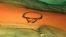 Within the enclosure, the remains of a hut were discovered, as well as a cooking pot, an oven, and Iron Age pottery made from local Greensand clays.[4] A total of 1,271 slingstones, individually weighing between 57g and 78g, were also found, the majority of them near to the entrance.[12] This find suggests that defence was at least one reason for building the camp.[6]