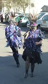 E. C. Cawte's (1963) work on morris dancing in Herefordshire, Shropshire and Worcestershire[13] quotes A History of Shrewsbury[14] regarding the Visitation at St. Mary's Parish Church, Shrewsbury, in 1584, when it was asked, "Whether there have bene any lords of mysrule, or somer lords and ladies, or any disguised persons, as morice dancers, maskers or mumm'ers, or such lyke, within the parishe, ether in the nativititide or in som'er, or at any other tyme, and what be their names?" It is thus clear that in Shrewsbury, on the Welsh border, morris dancers were associated with disguise in the 16th century.