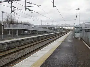 Blackridge was originally excluded from the Airdrie–Bathgate rail link project, but after a three-year campaign by the local community, funding was approved by the Scottish Government at a cost of £5 million. Private housing developer Manorlane agreed to fund 40% of the costs. However, it closed and the funding promise expired. West Lothian Council agreed to take on the burden and expects to recoup the cost from additional expansion in the area.[4] The station opened on 12 December 2010 on a new site, some 600 metres closer to Edinburgh than the previous Westcraigs station.[2]