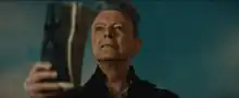 The film was shot in September 2015 in a studio in Brooklyn.[15] The filmmaking process was highly collaborative, with Bowie making many suggestions and sending Renck sketches of ideas he wanted incorporated. While both men agreed to leave the video open to interpretation (Renck initially refused to confirm or deny that the astronaut in the video was Major Tom), Renck has offered several details regarding its meaning. Renck later said on a BBC documentary "to me, it was 100% Major Tom."[16] It was Bowie who requested that the woman have a tail, his only explanation being "it's kind of sexual". Renck has speculated that Bowie may have been contemplating his own mortality and relevance to history while developing the video, but said that the crucified scarecrows were not intended as a messianic symbol. Renck has also stated that Bowie portrays three distinct characters in the video: the introverted, tormented, blind "Button Eyes"; the "flamboyant trickster" in the song's middle section; and the "priest guy" holding the book embossed with the "★" symbol.[14] Saxophonist Donny McCaslin said that Bowie had told him the song was about ISIL, although an official spokesperson for Bowie denied that the song was inspired in any way by the Middle East situation.[17][18]