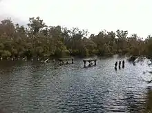 The river is prone to occasional flooding. In 1945 it rose to the highest level recorded to that date, running 1.1 metres (3.6 ft) over the Russell Street bridge in Nannup.[8] The river flooded again in 1946 and 1947 closing roads but not causing any significant damage to towns along the river.[9] In 1949 Nannup received 174 millimetres (6.85 in) of rain in a period of seven hours, causing flooding. A bridge over the Blackwood connecting the town to Busselton was swept away.[10]