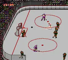 Blades of Steel, later released in Japan as Konamic Ice Hockey (コナミック アイスホッケー, Konamikku Aisu Hokkē), is an ice hockey video game released by Konami for North American arcades in 1987, and ported to the Family Computer Disk System and Nintendo Entertainment System in 1988. All teams are fictional but based out of real Canadian and American cities. The game is known for its fast-paced hockey action and especially for the fighting. It is a one or two player game. When playing against the computer, there are three difficulty levels to choose from: Junior, College, and Pro (with Pro being the most difficult and Junior being the easiest). Each team consists of three forwards, two defencemen, and a goaltender.