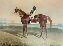 Blair Athol (1861–1882) was a British Thoroughbred racehorse and sire. In a career that lasted little more than three months in the summer and autumn of 1864, he ran seven times and won five races including one walk-over. His wins included The Derby and the St Leger. Despite the brevity of his racing career, he was regarded by contemporary experts as one of the best British racehorses of his era and arguably the greatest horse ever trained in the North of England. He went on to become a highly successful stallion, siring the winners of many races.