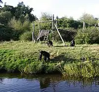 The first reserve features non-carnivorous native African species, such as Grant's zebra, Ankole-Watusi cattle, Guineafowl, Lechwe, Kudu and the Southern white rhinoceros. The rhinos are part of a Europe-wide breeding programme which began in 2004 with the arrival of three young rhinos from Kruger National Park: Dorothy (Dot), Graham and Jane.[10] Dorothy and Graham have gone on to have five calves: in 2007,[11] 2009,[12] 2012[13] and 2014.[14]