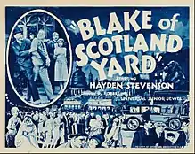 Blake of Scotland Yard is a 1927 American silent action film serial directed and co-written by Robert F. Hill. It starred Hayden Stevenson, Grace Cunard and Monte Montague, plus an uncredited appearance by Walter Brennan.[1] It was followed by a sequel, 1929's The Ace of Scotland Yard.