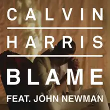 "Blame" is a song by Scottish DJ and record producer Calvin Harris from his fourth studio album, Motion (2014). It was released as the album's third single on 5 September 2014. The song features the vocals of English singer John Newman and is included on the deluxe edition of Newman's second studio album, Revolve. Newman's brother James Newman assisted the artists in writing the song, with Harris serving as the producer.