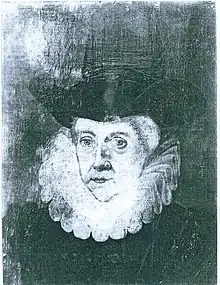 Blanche Parry arrived at the Royal Court with her aunt, Blanche, Lady Troy, who was the Lady Mistress to Edward VI and his half-sister Elizabeth I as children.[3] From the age of about 25 or 26 until her death, she was a servant of Queen Elizabeth, whom she served from her birth in 1533 onwards, writing in her epitaph in Bacton Church that her "cradle saw I rocked." Thereafter she hardly left Elizabeth and almost certainly attended her during her imprisonment in the Tower of London before she came to the throne. Her annuity or wage in the household for six months in 1552 was 100 shillings and she was allowed 30 shillings for horse fodder.[4]