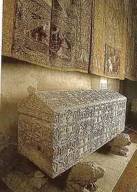 Infanta Blanche died at the Convent on 17 April 1321.[13] Her sepulchre is decorated with intertwined stars and with the arms of the kingdoms of Castile, León, and of the Kingdom of Portugal.[4]