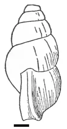 ![]() Drawing of apertural view of a shell. The scale is 1 mm. |