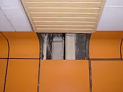 Stations of the Pyongyang Metro in North Korea, constructed 110 metres (360 ft) below ground in the 1960s and 1970s, are designed as nuclear blast shelters and each station entrance has thick steel blast doors.[1][2]