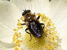 Blera robusta, the Greenish Wood Fly, is a rare species of syrphid fly first officially described by Curran in 1922.[1] Hoverflies get this name from the ability to remain nearly motionless while in flight. The adults are also known as flower flies, for they are commonly found around and on the flowers from which they get both energy-giving nectar and protein rich pollen. The larvae are of the rat-tailed type, feeding on exuding sap or in the rot holes of trees.[2][3]