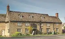 Bletchingdon village was originally built around a green, but the houses on the north side were demolished when Bletchingdon Park was extended. The earliest known record of a pub in the parish dates from 1616. By the 1670s there was one called the Angel and Crown. In 1703 Bletchingdon had three pubs: the Green Man, the Red Lion and the Swan. The Red Lion survived until 1951, when it lost its licence.[5] The village's last surviving pub is The Blacks Head Inn. It is a 16th-century building that was enlarged in the 17th and 18th centuries.[17] It was originally called The Blackamoor Head, probably after a black man-servant of the local Dashwood family, who is buried in Kirtlington chapel.[5] Other theories about this pub are that it was named for battle honours attributed to a local military family, or perhaps in honour of King Charles II ("the black boy"), or it could be to do with livery[18] of royal coach companies that stopped here.