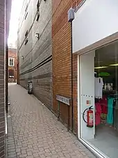 When built, the fort was 45 feet (14 m) square, and was made of stone.[1] It likely stood opposite a passage from Maiden Street to St Mary's Street, which today is likely Blockhouse Lane.[1] At the time, it was built on the site of "Charloote Row" (50°36′37″N 2°27′12″W), which is now a terrace and listed building.[2][3] There were embrasures for eight guns, although only five were ever fitted.[3] During the reign of Elizabeth I, a gentleman called Richard Smith was given the office of gunner, known as vi bellator, for life.[3] This suggests some royal funding for the fort, although it was likely built by the town of Melcombe, rather than the Crown itself.[2]