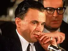 Hoffa is acquitted by juries several times after investigations led by Kennedy and his right-hand man, Phil Wharton, result in charges against him. He gloats about his victories and publicly taunts Bobby in committee hearings, in the press, even in a courtroom while attorney Edward Bennett Williams portrays Kennedy as a millionaire with no regard for "the working man."