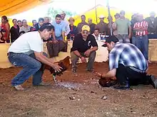 A blood sport or bloodsport is a category of sport or entertainment that involves bloodshed.[1] Common examples of the former include combat sports such as cockfighting and dog fighting, and some forms of hunting and fishing. Activities characterized as blood sports, but involving only human participants, include the ancient Roman gladiatorial games.
